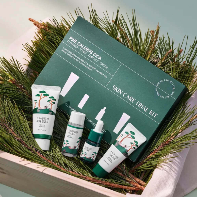 TRAVEL-НАБОР СРЕДСТВ С ЭКСТРАКТОМ СОСНЫ ROUND LAB TRAVEL-FRIENDLY MINI SKINCARE KIT PINE CALMING