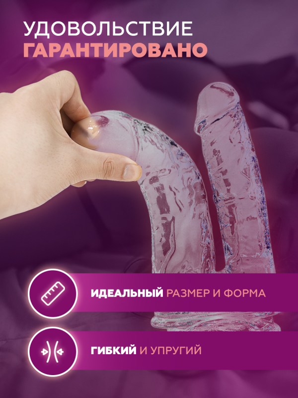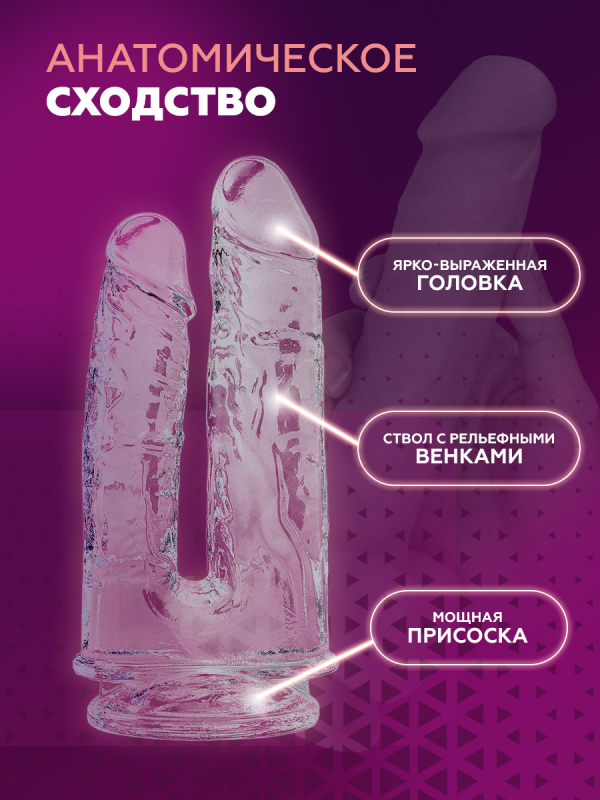 Выполнен дилдо из термопластичного эластомера в прозрачном цвете. Сразу два возбуждающих крепких ствола с венозным рельефом и ярко-выраженными головками заполнят ваши вагинальную и анальную дырочки для потрясающе острых ощущений, доводящих до дрожи в теле. На его основании имеется надежная присоска, благодаря которой процесс шалостей может происходить без участия рук.