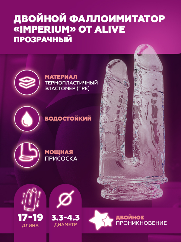 Воплотите в жизнь свои самые смелые фантазии вместе с фаллоимитатором Imperium от испанского бренда секс-игрушек Alive, который подарит вам возможность на двойное проникновение, способное вознести вас на самые высокие точки удовлетворения!