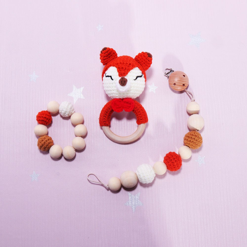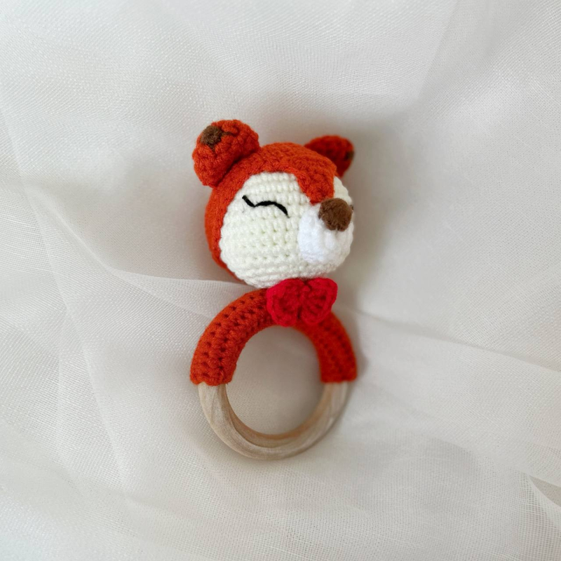 ВЯЗАННАЯ ПОГРЕМУШКА ЛИСИЧКА, 15СМ