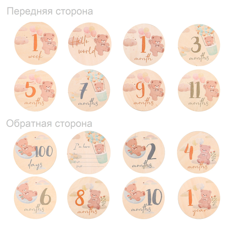 ДЕРЕВЯННЫЙ НАБОР КАРТОЧЕК ДЛЯ ФОТОСЕССИИ. МИШКА