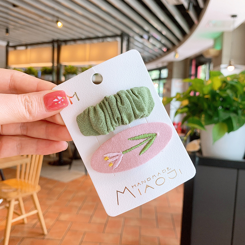ЗАКОЛКИ ПУДРОВАЯ(ВЫШИВКА) + ЗЕЛЕНАЯ(ПЛИССИРОВКА). 2ШТ