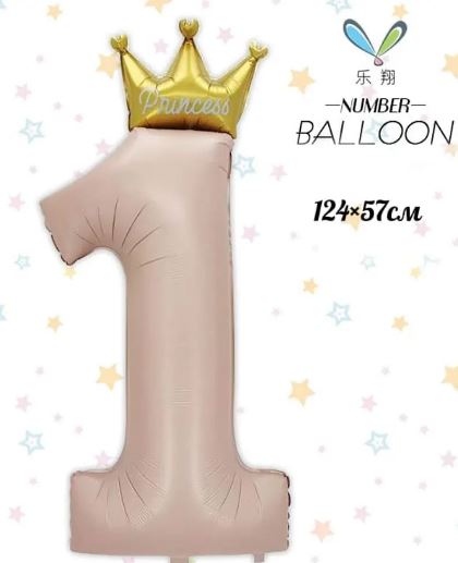 42" ЦИФРА ВИНТАЖНАЯ РОЗОВАЯ С КОРОНОЙ 1 4/5/12