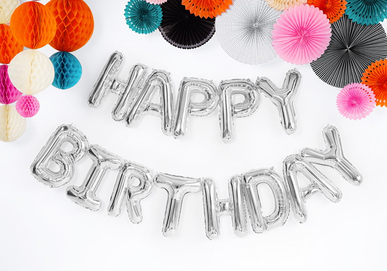 ГИРЛЯНДА ФОЛЬГИРОВАННАЯ HAPPY BIRTHDAY СЕРЕБРО