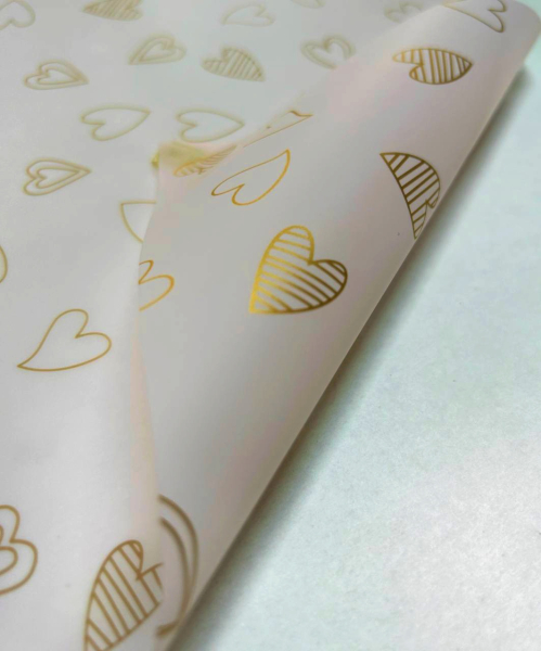 УПАКОВОЧНАЯ ПЛЕНКА СЕРДЕЧКИ НЕЖНО РОЗОВАЯ 60*60 СМ