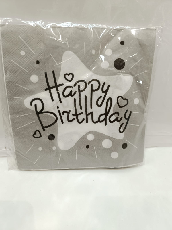 САЛФЕТКИ HAPPY BIRTHDAY КҮМІС ХРОМ СЕРЕБРО(10 ШТ)